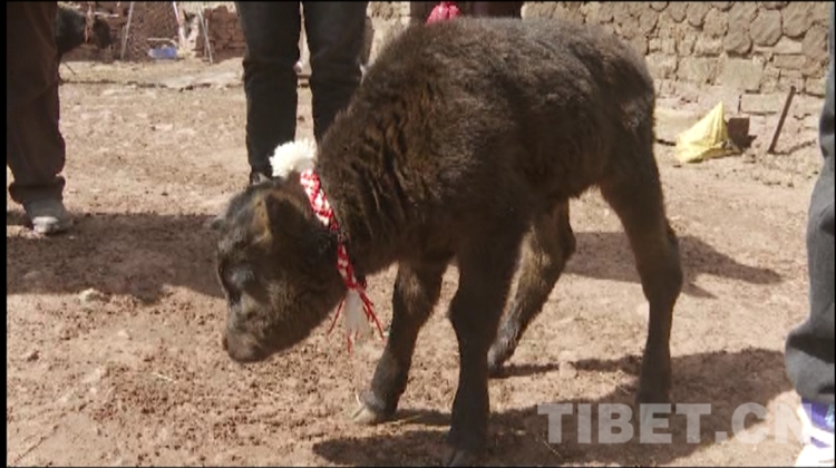 圖為貢覺(jué)縣2021年牦牛經(jīng)濟(jì)雜交后代首胎“雅江雪牛一號(hào)”