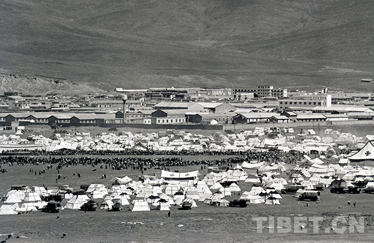 這是在藏北首府那曲鎮(zhèn)賽馬會上,臨時搭建起的各式帳篷(唐召明1987年攝)