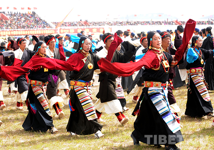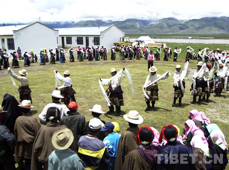 藏北牧民群眾與西藏其他地區(qū)群眾一樣,激越的民歌與優(yōu)美的舞蹈表現(xiàn)出他們豪放的性格和對生活的熱愛。