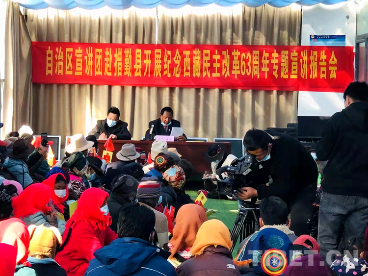 中國(guó)西藏網(wǎng)訊 3月26日,西藏自治區(qū)宣講團(tuán)在阿里地區(qū)措勤縣扎日南木措社區(qū)黨群活動(dòng)中心開(kāi)展紀(jì)念西藏民主改革63周年專項(xiàng)宣講。扎日南木措社區(qū)黨群活動(dòng)中心約200多名群眾參加。