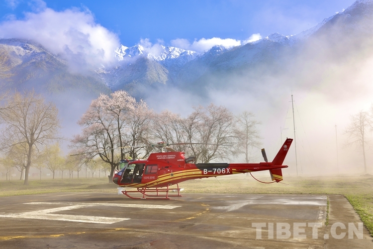 中國西藏網訊 云遮霧繞的早晨,青山如黛,桃花正盛。國網通航公司SG1151直升機機組的王磊卻沒時間欣賞這如畫的美景,一早便和同事們準備今天的航巡作業(yè)。