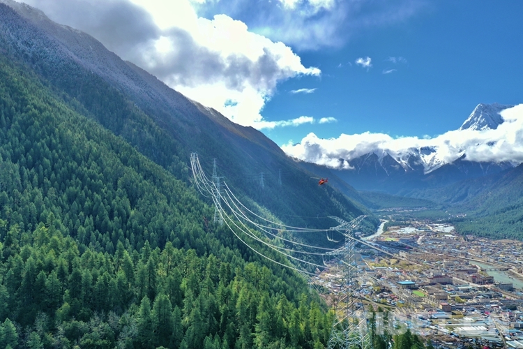 國網西藏電力超高壓公司林芝運維分部何王洪介紹,直升機起飛一架次可飛行三個多小時,完成至少40千米的輸電線路巡檢作業(yè),作業(yè)效率是傳統(tǒng)人工巡檢效率的數十倍。
