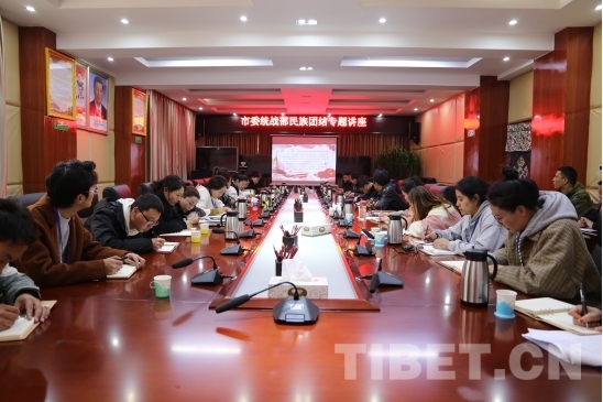 中國西藏網(wǎng)訊 近日,西藏自治區(qū)昌都市委統(tǒng)戰(zhàn)部舉辦“鑄牢中華民族共同體意識”專題講座。市民委黨組成員、一級調(diào)研員巴桑旺堆為干部職工講授民族團(tuán)結(jié)進(jìn)步模范區(qū)創(chuàng)建工作知識。