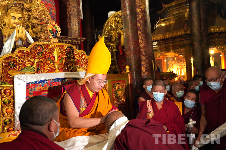 圖為班禪在大昭寺為僧眾摸頂賜福 攝影:王淑