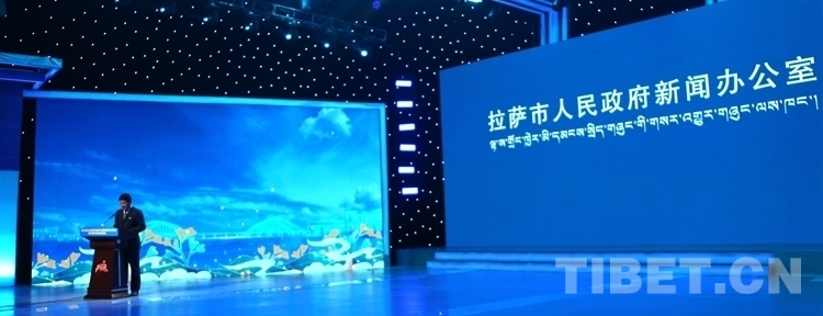 圖為新聞發(fā)布會現(xiàn)場介紹的拉薩創(chuàng)城“主題標識”獲獎作品 翻拍:王佳豪