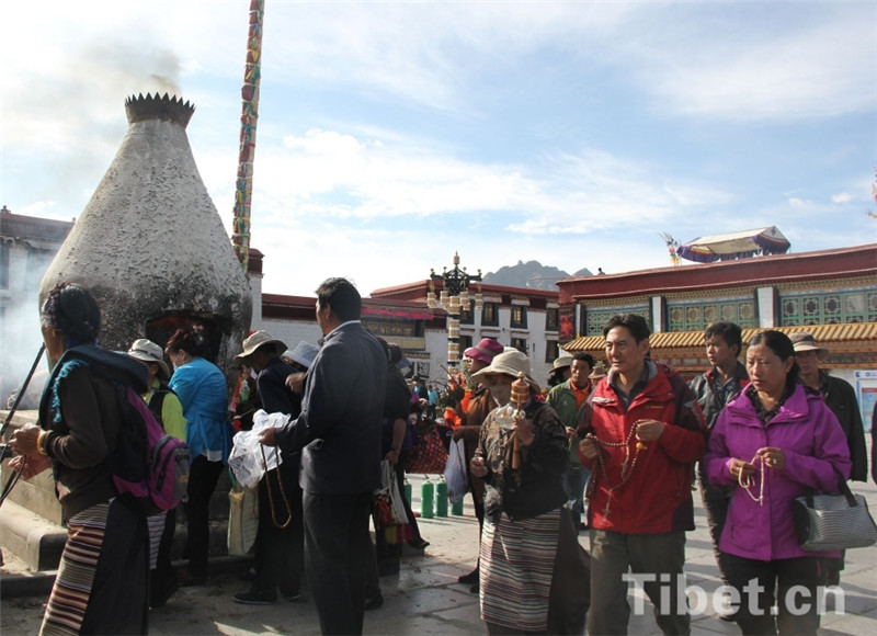圖為在西藏拉薩大昭寺前煨桑、轉(zhuǎn)經(jīng)、朝佛的信教群眾 攝影:馬靜
