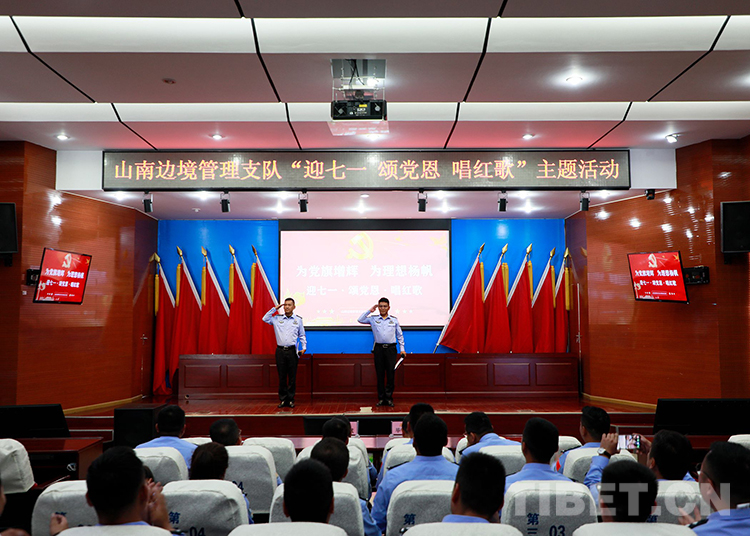 圖為山南邊境管理支隊(duì)機(jī)關(guān)組織開展“為黨旗增輝 為理想揚(yáng)帆——迎七一 頌黨恩 唱紅歌”主題歌詠比賽 鄭琦山攝