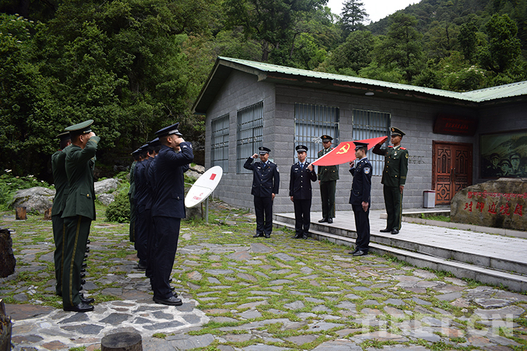 圖為錯(cuò)那邊境檢查站民警與錯(cuò)那縣武警中隊(duì)官兵共同在對印自衛(wèi)反擊戰(zhàn)前沿指揮所舊址重溫入黨誓詞 李啟書 攝