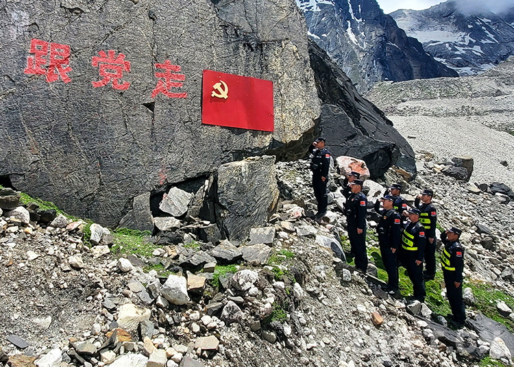 “我志愿加入中國共產(chǎn)黨,擁護(hù)黨的綱領(lǐng),遵守黨的章程......”。邊巴邊境派出所民警在深入一線巡邏踏查間隙,面向黨旗肅然站立,高舉右拳莊嚴(yán)宣誓,表達(dá)為黨的事業(yè)奮斗終身的初心,更加堅(jiān)定聽黨話、跟黨走的理想信念。