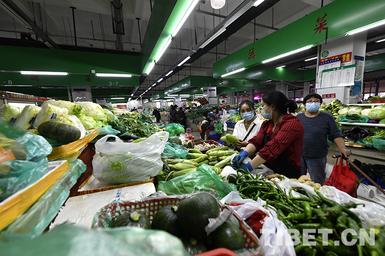 發(fā)布會后,記者掃碼、測溫后進(jìn)入拉薩市柳梧農(nóng)貿(mào)市場進(jìn)行實地探訪。農(nóng)貿(mào)市場外,市民自覺遵守疫情防控措施,有序進(jìn)入;農(nóng)貿(mào)市場內(nèi),經(jīng)營者和前來購物的市民均佩戴好口罩,選購產(chǎn)品。不管是肉類區(qū)、蔬菜區(qū),還是水果區(qū)、水產(chǎn)區(qū)均供應(yīng)充足,未出現(xiàn)斷檔缺貨現(xiàn)象,價格相較以往并無較大波動。(中國西藏網(wǎng) 記者/王媛媛)
