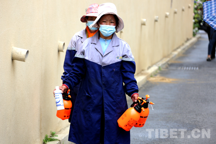 圖為保潔人員準(zhǔn)備對所在小區(qū)進行消殺 攝影:王佳豪