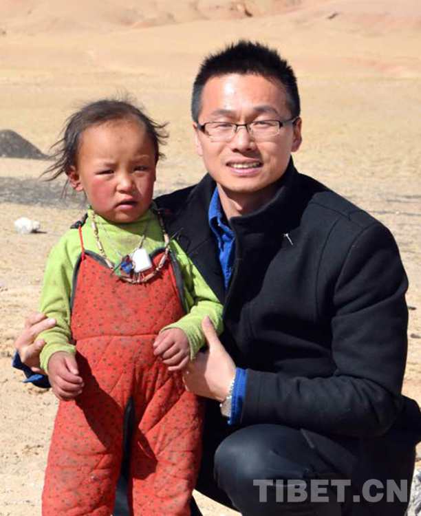 這是浙江省援藏干部唐小明在那曲“下鄉(xiāng)”時(shí),與所幫扶牧民鎖曾的孩子合影留念(唐召明提供,2014年攝)