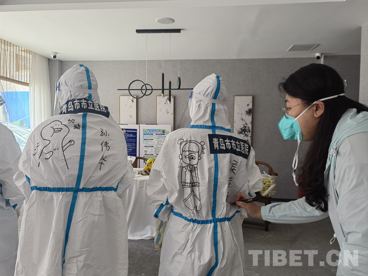 中國(guó)西藏網(wǎng)訊 青島援藏醫(yī)療隊(duì)自8月17日進(jìn)藏以來(lái), 隊(duì)員們無(wú)論工作多累多難、高原反應(yīng)有多難受,都沒(méi)有一句怨言,依然堅(jiān)持在西藏自治區(qū)日喀則市戰(zhàn)“疫”一線。工作之余,來(lái)自青島市市立醫(yī)院本部ICU的鐘翔宇發(fā)揮出了她的“隱藏技能”——在醫(yī)療隊(duì)的“大白”身上畫(huà)上漫畫(huà),用表情包背到身上的方式給隊(duì)友們加油鼓勁兒。身著漫畫(huà)“戰(zhàn)袍”的隊(duì)員們斗志昂揚(yáng),朝氣蓬勃,互相鼓勵(lì)幫助,完成了一天天的工作任務(wù)。而這些古靈精怪的漫畫(huà),在戰(zhàn)“疫”一線也成了一道靚麗的風(fēng)景線。(中國(guó)西藏網(wǎng) 記者/次旦拉姆 由桑珠孜區(qū)融媒體中心供稿)