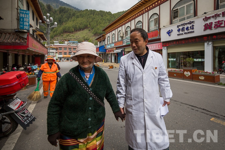 圖為藏族阿媽和漢族醫(yī)生在亞東縣街上