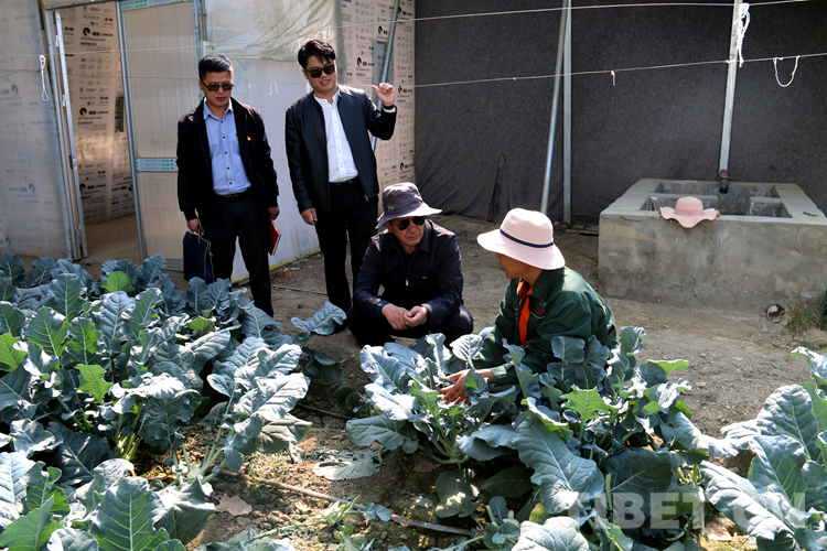 圖為次仁頓珠(左邊第三個(gè)戴灰色太陽帽為次仁頓珠)深入基層了解老百姓溫室菜棚經(jīng)營(yíng)情況