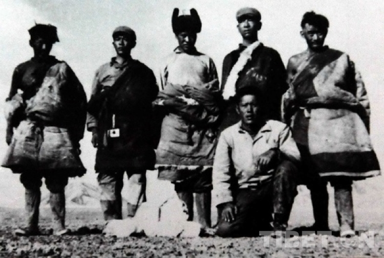他們馬不停蹄地向色務(wù)庫加會合地點(diǎn)挺進(jìn),8月16日到達(dá)預(yù)定地點(diǎn)。第二天,沒有見到其他考察工作組來會合,他們開始在周圍尋找。第三天,洛桑丹珍看到一二公里外似乎有個人影在晃動,便警惕地躲在一塊巖石后觀察。當(dāng)洛桑丹珍認(rèn)出來者是尼彭,便迎上前去,而尼彭都快走到洛桑丹珍眼前了也沒認(rèn)出他來。因?yàn)樗囊路缫哑茽€不堪,臉被曬得像塊黑炭。直到洛桑丹珍大聲喊著他的名字,尼彭方才醒悟過來,驚訝地叫著,“唉呀呀,你都成了無人區(qū)的野人了!”