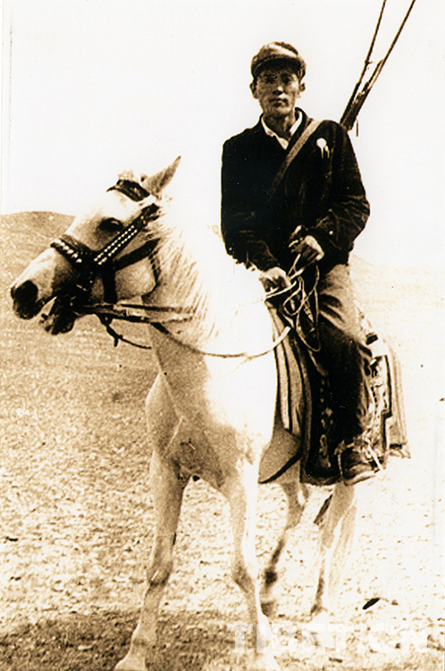 這是時任申扎縣縣長的洛桑丹珍騎馬,準(zhǔn)備走進(jìn)藏北無人區(qū)考察(唐召明提供,1974年攝)