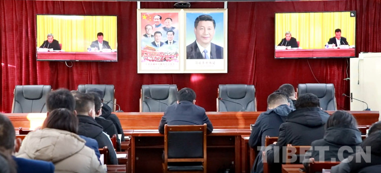 圖為日土縣自然資源局干部職工集中收看黨的二十大精神中央宣講團報告會