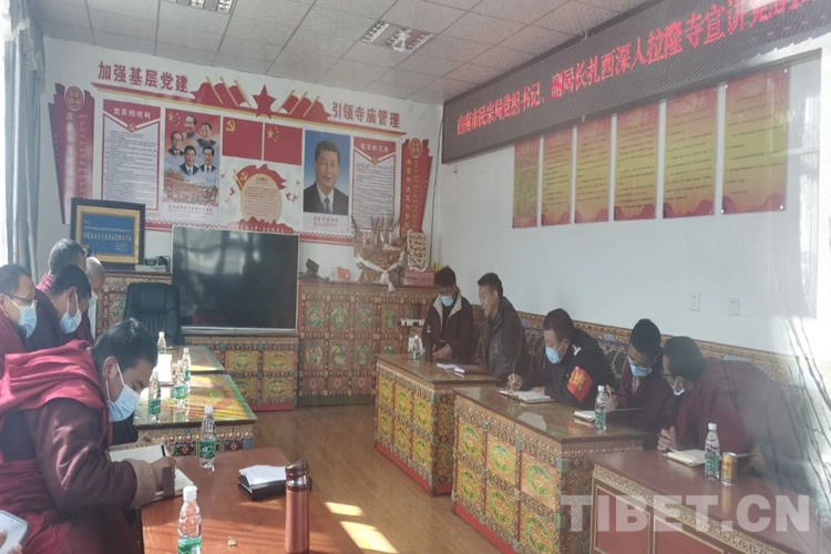 圖為洛扎縣拉隆寺僧人和駐寺干部深入學(xué)習(xí)黨的二十大精神,僧人們表示,要持續(xù)弘揚(yáng)愛國(guó)愛教優(yōu)良傳統(tǒng),自覺踐行“四條標(biāo)準(zhǔn)”,不斷增進(jìn)“五個(gè)認(rèn)同”,牢固樹立“三個(gè)意識(shí)”,堅(jiān)持藏傳佛教中國(guó)化方向,積極推動(dòng)宗教與社會(huì)主義社會(huì)相適應(yīng),堅(jiān)定不移聽黨話、感黨恩、跟黨走。