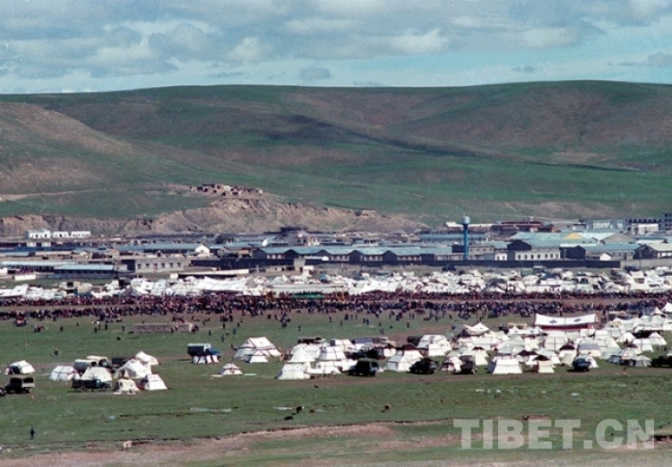 這是在藏北首府那曲鎮(zhèn)賽馬會(huì)上,臨時(shí)搭建起的各式帳篷(唐召明1987年夏攝)
