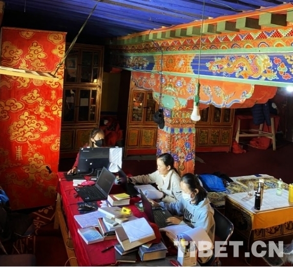 圖為2021年,西藏民族大學(xué)實(shí)習(xí)生對布達(dá)拉宮藏經(jīng)進(jìn)行記錄和統(tǒng)計