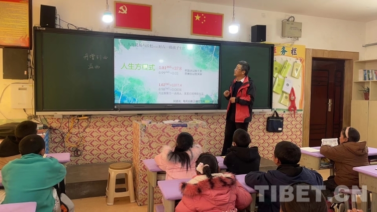 圖為2022年4月10日,韓軍峰為革吉縣完全小學(xué)畢業(yè)班的同學(xué)們上主題班會(huì)