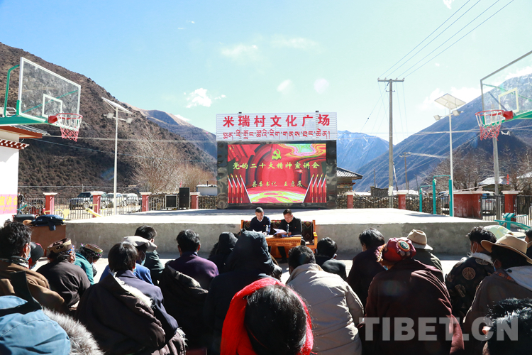 圖為工布江達(dá)縣委書(shū)記王啟展在米瑞村宣講黨的二十大精神