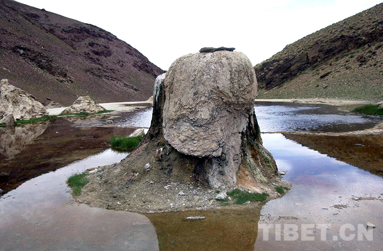 這是藏北尼瑪縣榮瑪溫泉溶巖柱景觀(唐召明2001年攝)