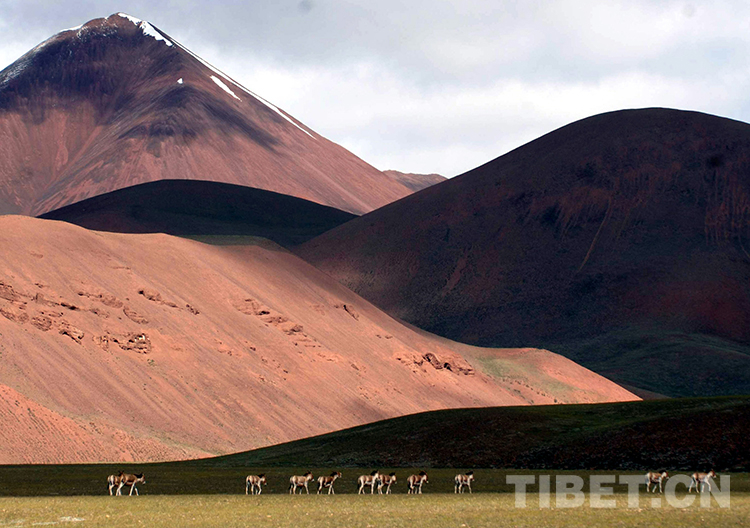 這是藏北高原的紅山脈與國家一級保護(hù)動物藏野驢(唐召明2009年攝)
