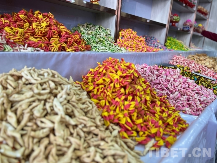 圖為年貨市場(chǎng)里的各類(lèi)“卡塞” 攝影:次旦拉姆