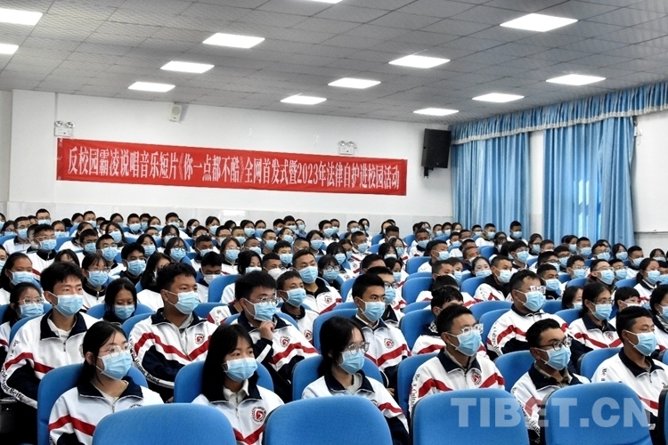 中國(guó)西藏網(wǎng)訊 3月7日,由共青團(tuán)西藏自治區(qū)委員會(huì)主辦的西藏首部反校園霸凌說唱音樂短片《你一點(diǎn)都不酷》全網(wǎng)首發(fā)式暨2023年法律自護(hù)進(jìn)校園推廣活動(dòng)在拉薩市第二高級(jí)中學(xué)舉行。