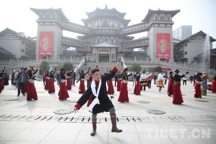 圖為大唐西市活動(dòng)現(xiàn)場(chǎng) 多杰尼瑪正在領(lǐng)舞 攝影:呂靜
