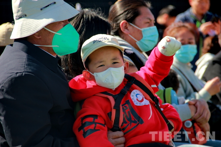圖為來自青海省果洛藏族自治州的患兒們及家屬在“同心造林·共鑄健康”“同心·共鑄中國心”2023年同心林植樹和義診活動啟動儀式上 攝影:劉莉