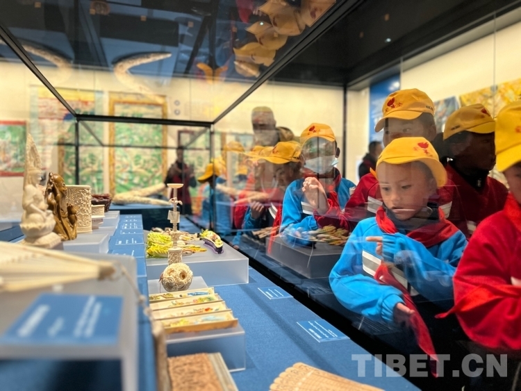 隨后學(xué)生們來(lái)到“離太陽(yáng)最近的人——西藏民俗文化展”,這里主要展示西藏獨(dú)具特色的生產(chǎn)生活習(xí)俗、各地服飾、各種農(nóng)事用具和生活用品、節(jié)慶文化以及西藏民俗文化等,場(chǎng)景化和實(shí)物展示讓孩子們對(duì)其背后的文化更容易入腦入心,理解透徹?!翱矗@里有打酥油桶、這個(gè)是黑帳篷、這個(gè)是織布機(jī)……”“家里的東西都在博物館?!薄吧洗芜^(guò)年時(shí)我吃到了瓷器,原來(lái)是好吃懶做的意思呀,哈哈哈?!焙⒆觽儊?lái)到西藏民俗文化展,對(duì)著展品展開(kāi)了激烈的討論,看見(jiàn)平時(shí)生活中隨處可見(jiàn)的東西很多都在博物館時(shí),既覺(jué)得不可思議又感覺(jué)很親切。(中國(guó)西藏網(wǎng) 記者/德吉卓瑪)