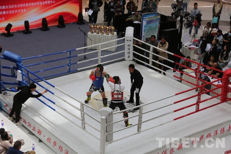 中國(guó)西藏網(wǎng)訊 4月15日,2023年西藏自治區(qū)全民健身系列活動(dòng)(自由搏擊)在拉薩市舉行。擂臺(tái)上紅藍(lán)雙方使出各自“武學(xué)”本領(lǐng),激情比賽。引得擂臺(tái)下觀眾血脈噴張,喝彩聲連綿不斷。