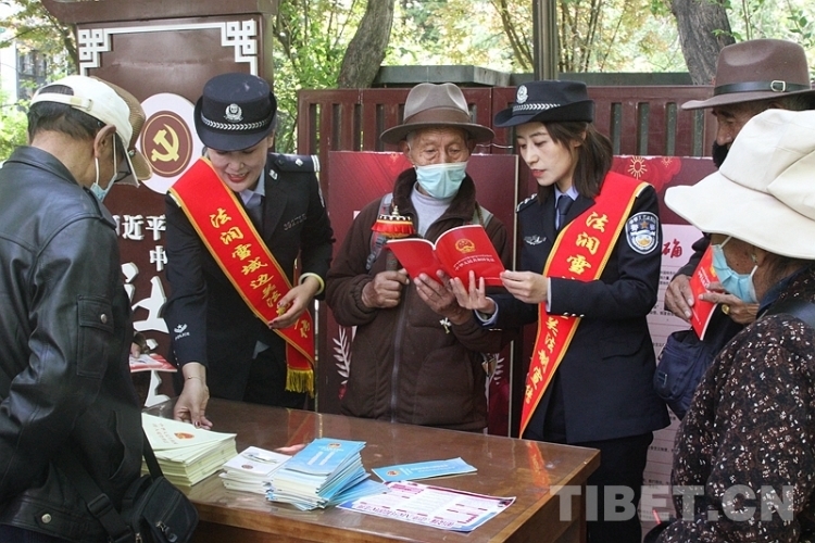 圖為西藏邊檢總站執(zhí)法調查支隊組織民警開展“2023民法典進公園”主題宣傳活動 攝影:仁青旺堆