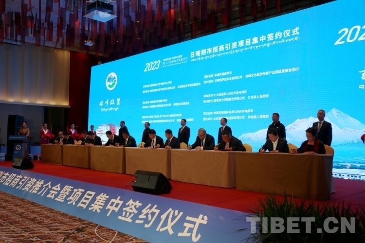 在隨后舉行的日喀則招商引資項(xiàng)目集中簽約儀式上,共簽約項(xiàng)目58個(gè),總投資約204億元,涉及高原農(nóng)牧、清潔能源、邊貿(mào)物流等多個(gè)產(chǎn)業(yè)。