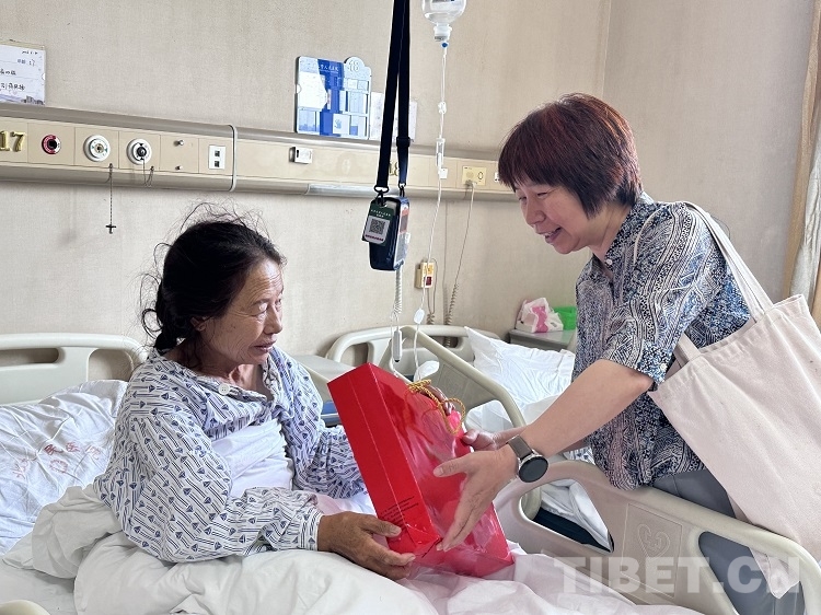 圖為中國社科院民族所副所長丁賽同志看望西藏來京接受治療的患者 攝影:趙越
