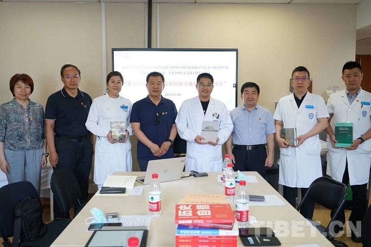 中國西藏網(wǎng)訊 主題黨日活動是加強黨的基層組織制度建設(shè)的重要抓手,是加強黨員黨性教育的重要方式,是提升基層黨組織生活活力的主要途徑。如何開展好主題黨日活動,是全黨上下各支部一直在認真思考的一項政治任務(wù)。在民族團結(jié)工作領(lǐng)域,開展好符合新時代特征的主題黨日活動,既是共產(chǎn)黨員踐行初心與使命的基本要求,也是探索鑄牢中華民族共同體意識工作的新方向。2023年7月6日,中國社會科學(xué)院民族學(xué)與人類學(xué)研究所的應(yīng)用民族學(xué)研究室和學(xué)會聯(lián)合黨支部、人類學(xué)研究室和學(xué)會聯(lián)合黨支部來到北京大學(xué)人民醫(yī)院骨關(guān)節(jié)科黨支部,與正在該醫(yī)院接受大骨節(jié)病手術(shù)治療的藏族同胞一起開展了一場以“在祖國和人民最需要的地方踐行初心與使命”為主題的黨日活動。
