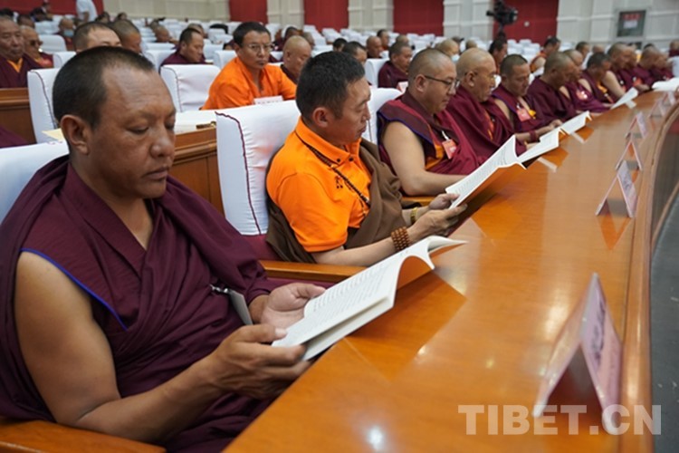 班禪說,藏傳佛教在長期發(fā)展過程中產(chǎn)生了浩如煙海的經(jīng)典,內(nèi)容非常豐富。研究發(fā)掘藏傳佛教經(jīng)典、弘揚中華優(yōu)秀傳統(tǒng)文化、實現(xiàn)藏傳佛教健康傳承是高僧活佛應(yīng)該擔當?shù)臍v史使命。他要求,高僧活佛要恪守普度眾生的核心要義,秉承“上求佛道、下化眾生、莊嚴國土、利樂有情”的根本宗旨,踐行護國利民的重大要求,加強聞思修、提升講辯著,精進學識、精思漸悟,深入領(lǐng)會藏傳佛教經(jīng)典的核心要義,融會貫通,把握其中蘊含的深刻哲理,不馳于空想、不騖于虛聲,把佛教教義與自身實際、歷史背景與社會現(xiàn)實有機結(jié)合起來進行綜合思考,形成符合時代進步要求的認識、符合藏傳佛教傳承需要的見解,通過佛之真理,解眾生之惑,以更強的使命責任投入到教義闡釋中,綿綿用力,久久為功,一步一個腳印為推進藏傳佛教中國化作出不懈努力。