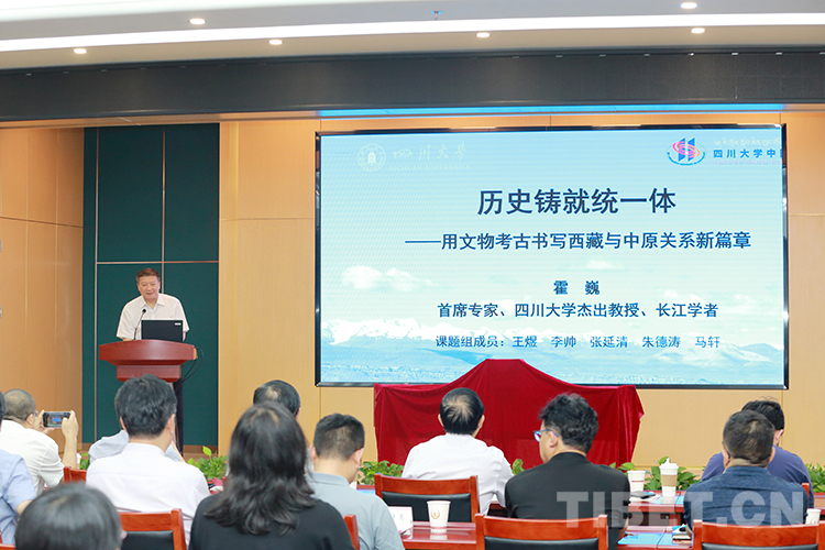 圖為《歷史鑄就統(tǒng)一體:考古與文物所見西藏和中原關(guān)系資料研究》主編霍巍發(fā)言 攝影:陳衛(wèi)國(guó)