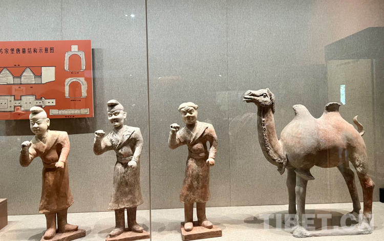 頭戴尖頂高帽,身著敞領(lǐng)毛皮長袍,足蹬胡式長靴,這些陳列在敦煌博物館中的一尊尊駱駝俑和陶牽駝俑成為了歷史的見證,向我們講述著1400多年前的民族交往交流交融故事。時至今日,在敦煌夜市上依然人聲鼎沸,有來自全國不同地域的游客、講著不同民族各不相同的語言、購買著來自各地富有特色的商品,豈能不讓人聯(lián)想到敦煌過去的熱鬧與繁榮。
