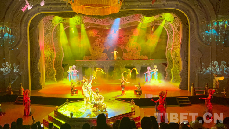 圖為全球首部洞窟式沉浸體驗劇《樂動敦煌》演出現(xiàn)場,向世界傳播敦煌文化之美 攝影:趙振宇