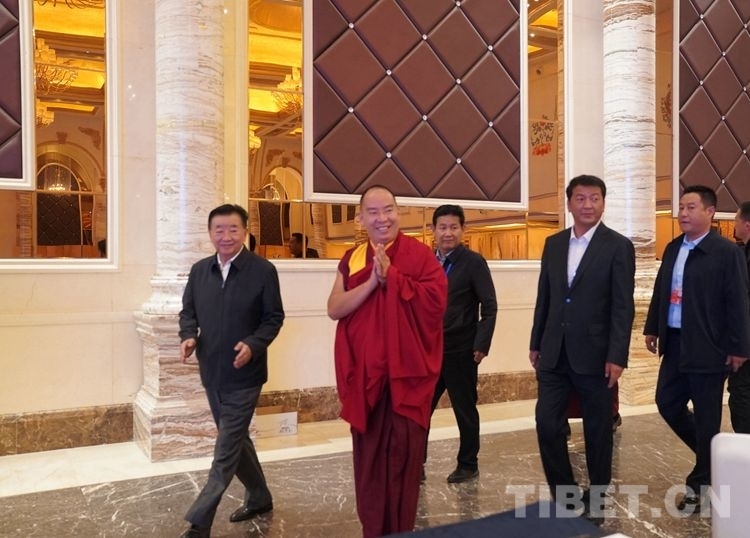 圖為班禪和出席活動的領(lǐng)導(dǎo)步入會場 攝影:王淑
