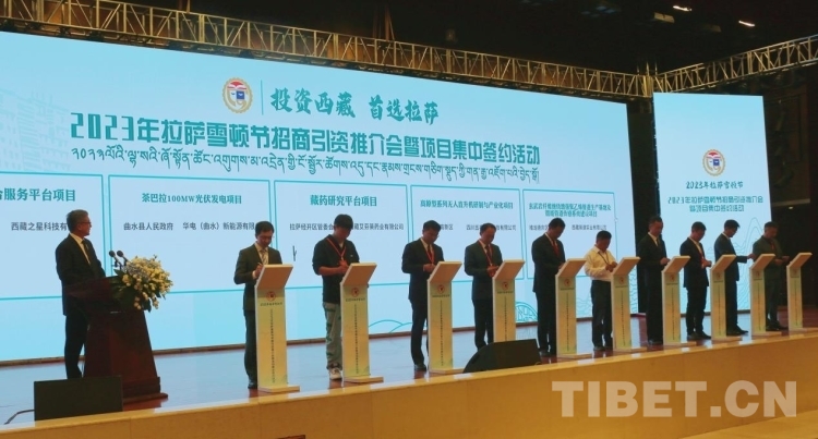 中國西藏網(wǎng)訊 8月17日,西藏自治區(qū)拉薩市2023年雪頓節(jié)招商引資推介會(huì)暨項(xiàng)目集中簽約儀式(以下簡稱:會(huì)議)在拉薩舉行。共達(dá)成簽約項(xiàng)目32個(gè),總投資130.56億元。