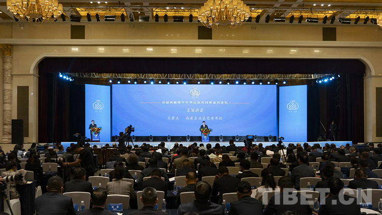 圖為首屆西藏鑄牢中華民族共同體意識論壇現(xiàn)場,西藏自治區(qū)黨委書記王君正出席并作主旨演講。 攝影:趙振宇