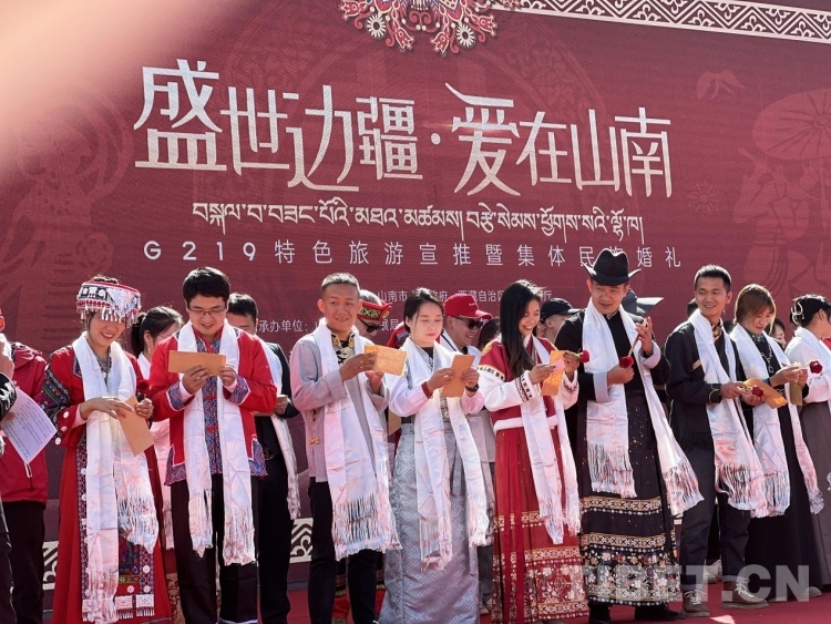 中國(guó)西藏網(wǎng) 9月22日,由西藏山南市人民政府,西藏自治區(qū)旅游發(fā)展廳共同主辦的“盛世邊疆·愛(ài)在山南”G219特色旅游宣推暨集體民族婚禮在山南市乃東區(qū)啟動(dòng)。西藏自治區(qū)旅游發(fā)展廳,山南市旅游發(fā)展局、民宗局等相關(guān)部門以及各縣(市、區(qū))分管領(lǐng)導(dǎo)和來(lái)自全國(guó)各地的23對(duì)少數(shù)民族情侶、夫妻共同參加了此次活動(dòng)。