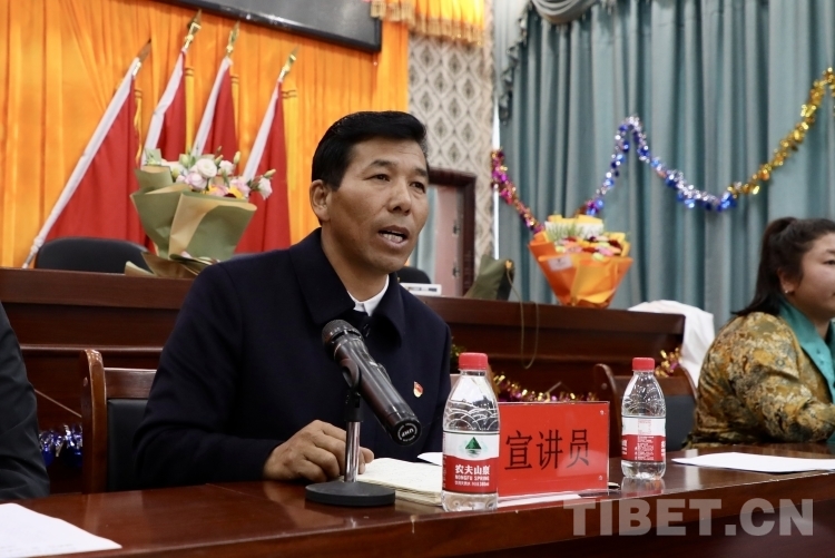 圖為巴桑次仁進(jìn)行宣講 攝影:次仁羅布