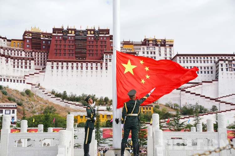 圖為10月1日西藏自治區(qū)慶祝中華人民共和國(guó)成立74周年“升國(guó)旗、唱國(guó)歌”儀式。 攝影:王淑