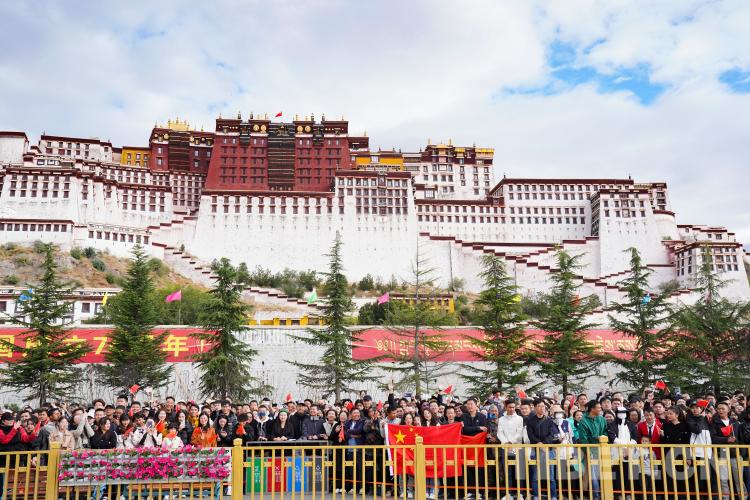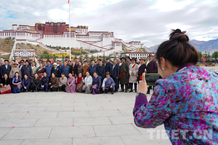 圖為升旗儀式結(jié)束后各族群眾在布達(dá)拉宮廣場(chǎng)前合影。 攝影:王淑